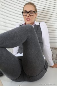 The lovely Aston Wilde is at the office today and looking as hot as ever in this free gallery from Only Opaques. Her sexy secretary uniform includes a grey vest over her white blouse with shorts, high heels and gray opaque tights. She has her pulled back in a ponytail and those glasses are a very nice touch! Aston does some fantastic leg tease poses for us before stripping for the camera, removing her vest and shorts to kick things off. This hot blonde babe then slowly unbuttons her blouse to reveal a sheer red bra, which she pulls up to show off those small, adorable tits. I hope you’ve enjoyed this free gallery and if you would like to see more of Aston and other beautiful models posing as sexy secretaries in uniform, click HERE for instant access to OnlyAllSites today!