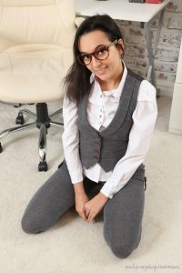 Cute glamour model Summer Fox is teasing as a hot office babe in this free gallery from Only Opaques. This cutie is wearing grey shorts with a matching vest over her white blouse. A pair of high heels and grey opaque tights finishes off this sexy secretary uniform. Summer sure knows how to tease us with those amazing legs and had caught my attention even before she start stripping for the camera. The blouse and shorts come off as does her cute bra, exposing those adorable tits in the process. You can get access to all of Summer Fox’s amazing updates as well as other hot models in secretary uniforms over at OnlyAllSites. Click HERE to visit the site today!