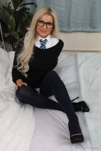I always love it when Chloe Welsh visits the OnlyTease studios because she pretty much looks fantastic in everything she wears! As a big fan of the school and college uniform, I was quite excited to see this update while scrolling through the archives of Chloe in a this sexy outfit. Her school uniform includes a dark sweater over her blouse and necktie. She is also wearing a miniskirt, high heels and what I thought originally to be opaque tights on her killers legs. As the striptease progresses you will see they are actually thigh high socks that contrast nicely with her white panties when she removes her short skirt. This blonde bombshell finishes things off topless in nothing but those socks, panties and heels. Enjoy the free gallery and if you’re interested in checking out more of Chloe Welsh and other hot glamour babes in uniforms, click the banner below for instant access to OnlyAllSites today!