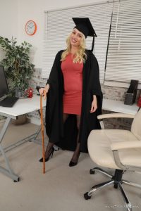 Blonde bombshell Holly Gibbons returns to Babes And Cuties in this free gallery from the folks over at OnlyTease. She is posing at the office in a cute minidress that shows off her amazing curves, inlcuding those ample tits and curvy hips. Those amazing legs of hers are encased in sheer black stockings and she finishes off this sexy outfit with a pair of high heels. Holly removes her robe to give us a better look at the outfit before turning her back to us and lifting her dress around her waist. This reveals her incredible ass in thong panties as well as the suspenders keeping her nylons from slipping down her killer legs.
