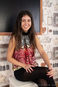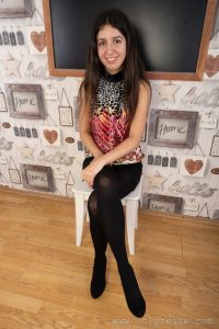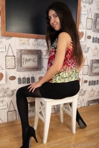 The adorable Katty West from OnlyTease is featured in this free gallery from the site and showing off those cute legs and feet in black opaque pantyhose. She is wearing a very short miniskirt that really shows off those nylon-clad legs quite well in addition to a pair of black high heels that she keeps on during the entire photoshoot. As she does some sexy leg tease poses, Katty slides off her top to show off those small, perky tits of hers before sliding off her miniskirt and giving us a pretty good view of her ass and the white panties she is wearing under her pantyhose. I hope you’ve enjoyed the free gallery and if you’d like to see more of Katty and other hot glamour models in sexy outfits and nylons, click the banner below for instant access to OnlyAllSites today!